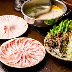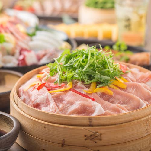 名物の六白黒豚のしゃぶしゃぶ、蒸ししゃぶを堪能いただけます。